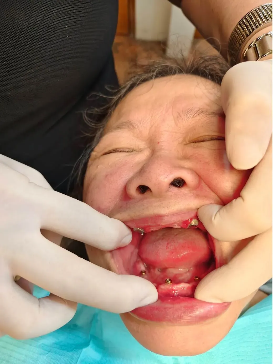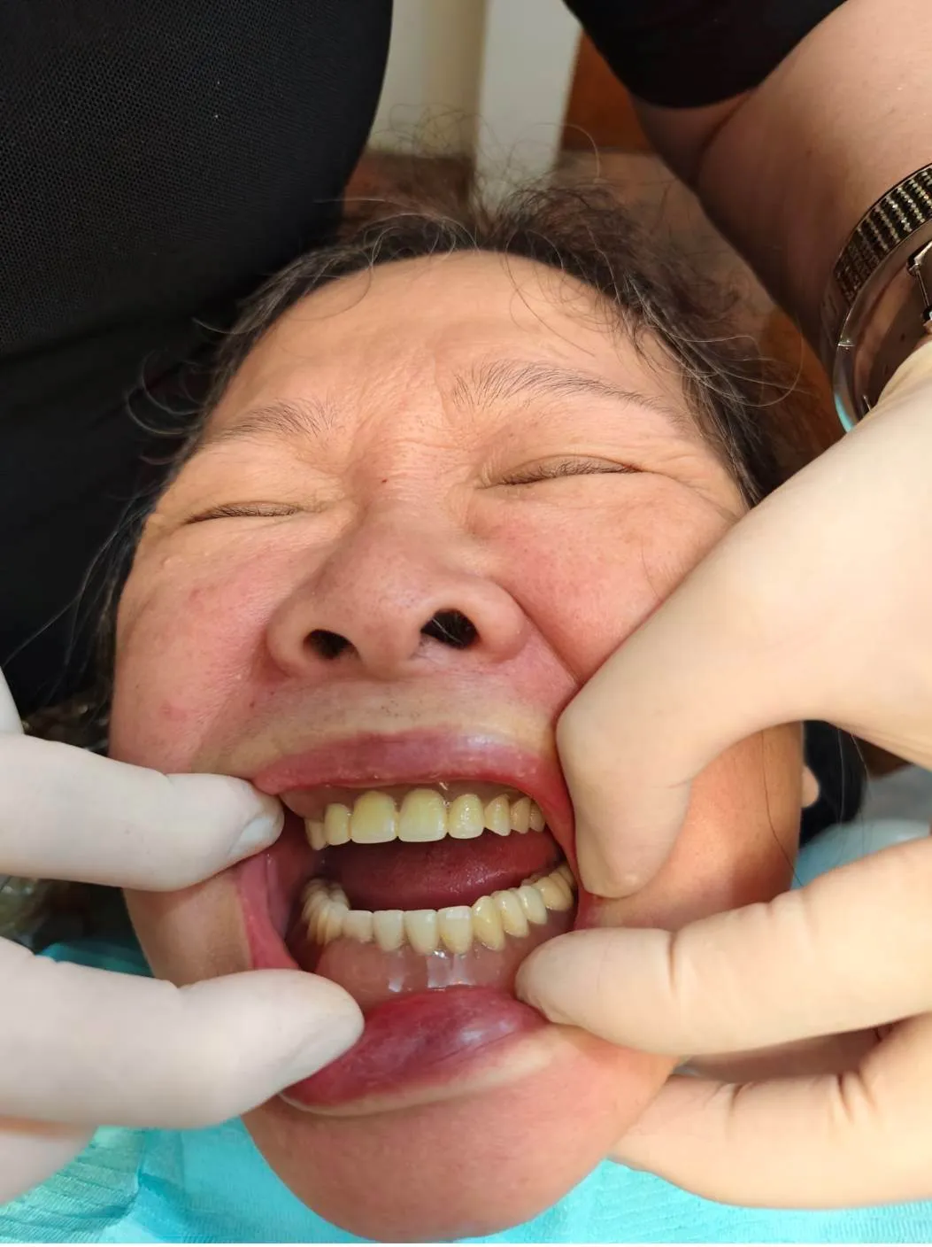 我從大里來找楊醫師,是姐夫介紹的,來時才知道原來姊夫牙齒也很不好,都是全口無牙,二十年前就是楊醫師植牙的,現在我也是,上面楊醫師留了一顆牙做磁鐵,一顆牙做鈕扣,但下面沒有任何牙齒真的很難過,現在植牙三顆改變太大了,甚麼都能咬,真是太感謝了。